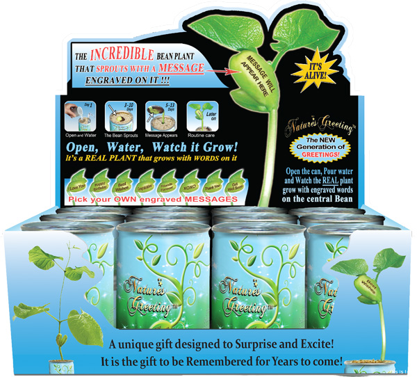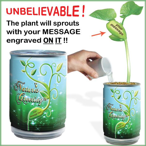 It's incredible! A new gift plant that quickly sprouts to reveal a secret personal message engraved on the beautiful plant's central bean. Just open... water... make your wish and watch your message grow and grow and grow.