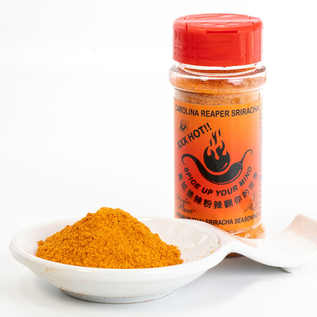 Packaged in convenient plastic shakers with a sift & spoon lid, each 2 oz. (56g) container of our Sriracha Carolina Reaper Powder delivers the traditional Sriracha taste with an added punch of Carolina Reaper heat.